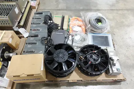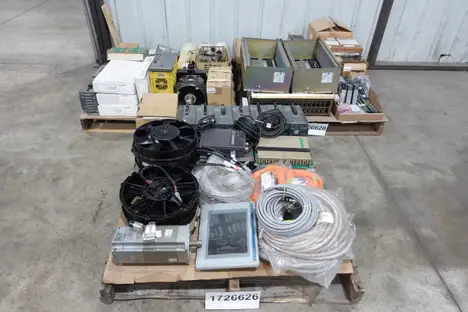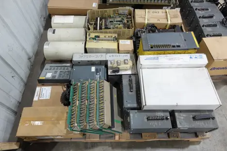 SKU 1726626 - 3 PALLETS OF ASSORTED AUTOMATION AND CONTROLS, CHASSIS, MODULES, SERVO MOTORS, CORDSET CABLES, FANS, DRIVES, INTERFACE PANEL, CONTROLLERS; AB, MITSUBISHI, FANUC, STI, YASKAWA, SIEMENS, ORIENTAL MOTOR