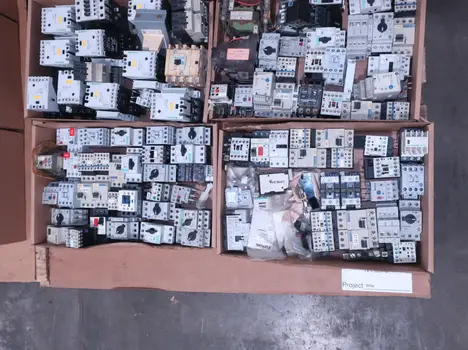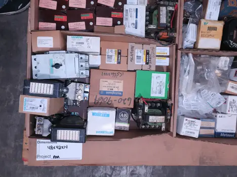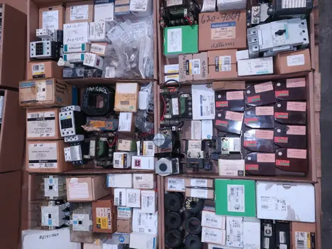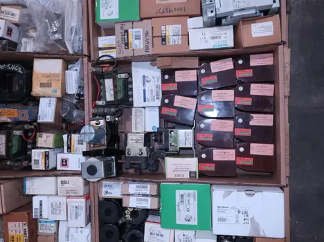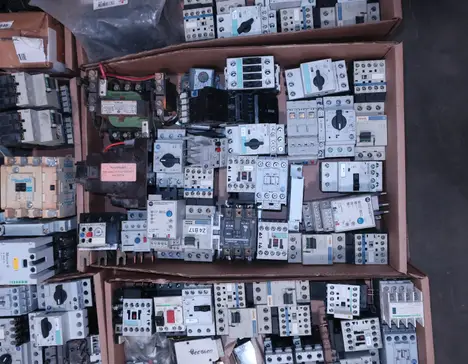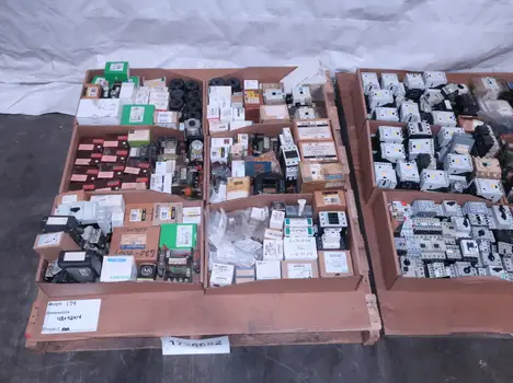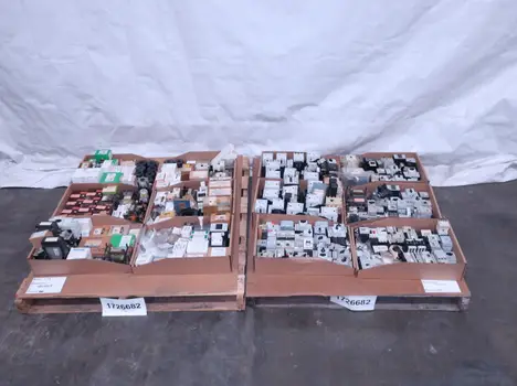 2 PALLETS OF ASSORTED MOTOR STARTERS, CONTACTORS AND OVERLOAD RELAYS, GENERAL ELECTRIC, ALLEN BRADLEY, CUTLER HAMMER, WESTINGHOUSE, SQUARE D, SIEMENS, SCHNEIDER, TELEMECANIQUE, MITSUBISHI, FURNAS, EATON