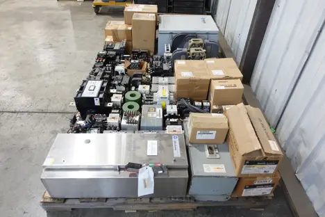 2 PALLETS OF ASSORTED MOTOR STARTERS, CONTACTORS AND OVERLOAD RELAYS, ALLEN BRADLEY, SQUARE D, GE, CUTLER HAMMER, WESTINGHOUSE, BENSHAW, MOELLER, SIEMENS, TELEMECANIQUE, COPPER LOGIC