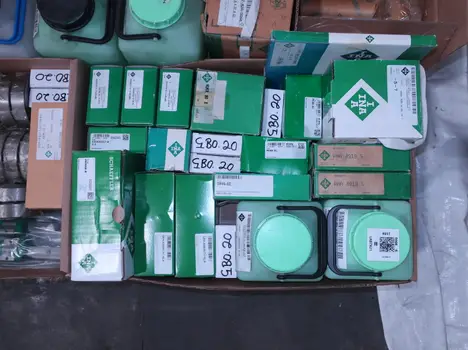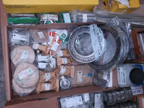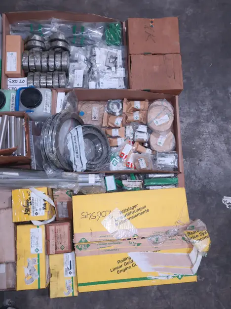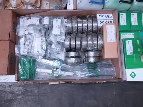 PALLET OF ASSORTED INA BEARINGS AND PARTS, LINEAR BEARINGS, ROLLER BEARINGS, RAILS, BALL BEARINGS