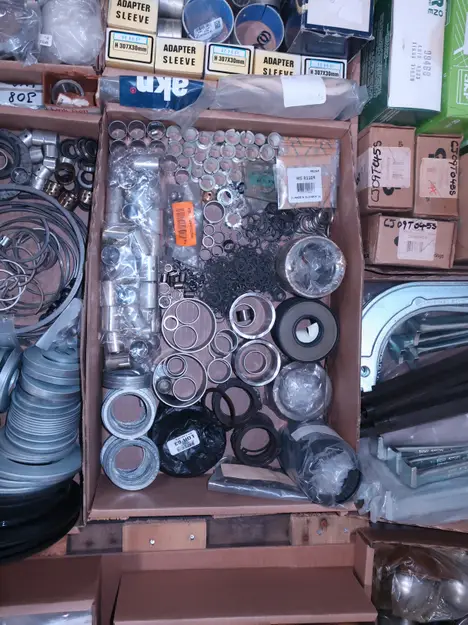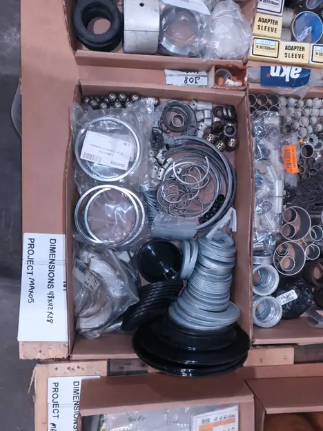 2 PALLETS OF ASSORTED BEARINGS PARTS, SLEEVES, RINGS, SEALS, STEEL BALLS, BUSHINGS, PLATE COVERS, SNR, SKF, IKO, AKN, COOPER, TIMKEN, HOFFMAN, RHP, CR