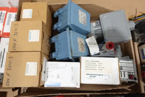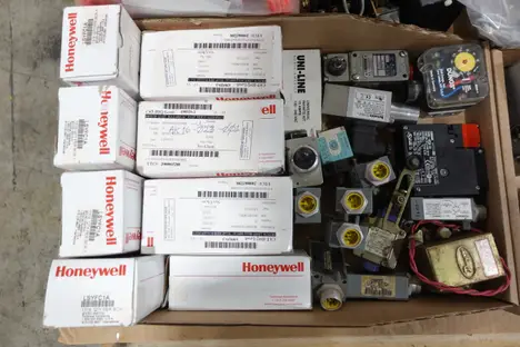 2 PALLETS OF FLOAT, LIMIT, AND PRESSURE SWITCHES, SENTROL, HONEYWELL, SOR, KRAUS&NAIMER, GO SWITCH, AB, MAGNETROL, GE, SIEMENS, MICRO SWITCH, BALLUFF, DWYER, BETTIS, CUTLER HAMMER