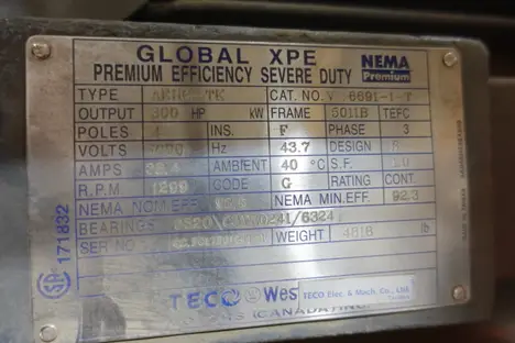 TECO WESTINGHOUSE V-6691-1-T PREMIUM EFFICIENCY SEVERE DUTY MOTOR, 300 HP, 3 PH, 1299 RPM, 4000V, FR. 5011B, 4 POLE