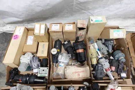 5 PALLETS OF ASSORTED PNEUMATIC REGULATORS, NORGREN, WATTS, ITT, FISHER, WILKERSON, MARSH BELLOFRAM, SMC, FAIRCHILD, PARKER, FESTO