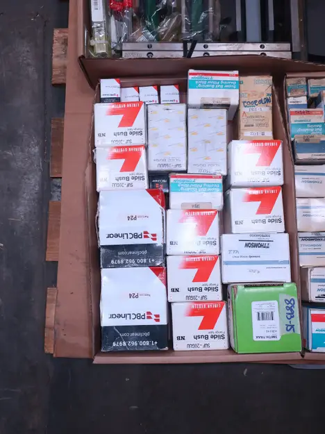 SKU 1727896 - PALLET OF ASSORTED LINEAR BEARINGS, THOMSON. THK, PBC LINEAR, NSK, MISUMI, INA
