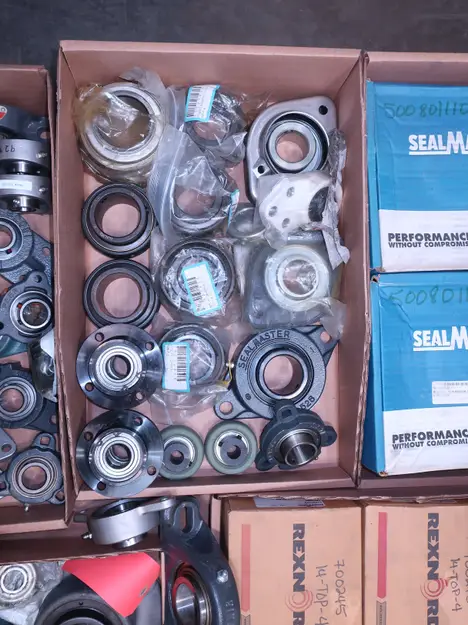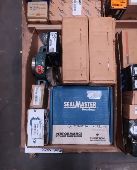 PALLET OF ASSORTED MOUNTED BEARINGS, SEAL MASTER, REXNORD, TIMKEN, DODGE, NTN, LINK BELT, AMI, PEER