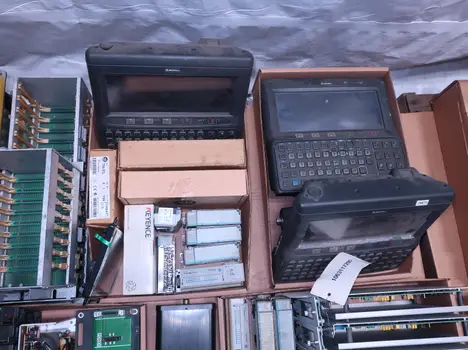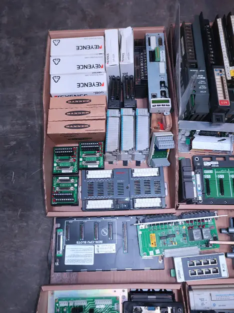2 PALLETS OF ASSORTED AUTOMATION AND CONTROLS, MODULES, TERMINALS, DISPLAY SCREENS, CONTACT BLOCKS, VIBRATION BOARDS, CIRCUIT BOARDS, AB, PULS, KEYENCE BANNER, MOTOROLA