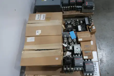 SKU 1732346 - 2 PALLETS OF ASSORTED STARTERS, OVERLOAD RELAYS, AND CONTACTORS, AB, MOELLER, SQUARE D, ABB, GE, MITSUBISHI, FUJI ELECTRIC, FURNAS, EATON