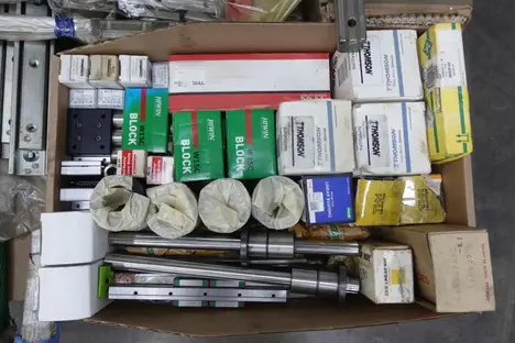 SKU 1733783 - PALLET OF ASSORTED LINEAR BEARINGS, RAILS, GIDES AND BALL SCREW ASSEMBLIES; THK, THOMSON, HIWIN, IKO, MISUMI, NAGEL, NIPPON
