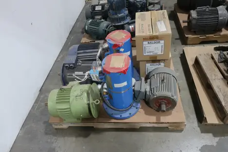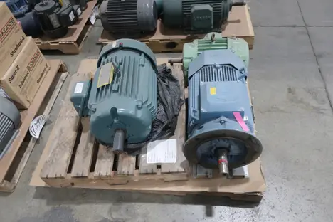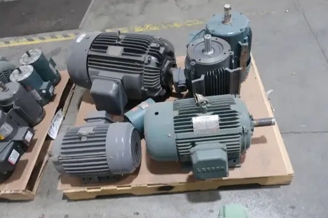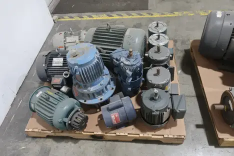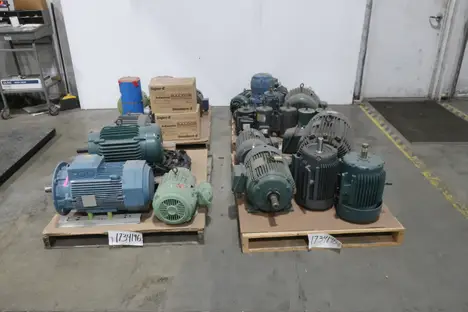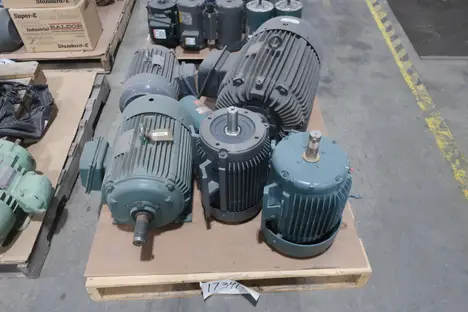 SKU 1734196 - 4 PALLETS OF ASSORTED AC MOTORS RELIANCE, BALDOR, WORLDWIDE ELECTRIC, TECO, STEARNS, TOSHIBA, LEESON, ELECTRIC APPARATUS, MARATHON, GE, ABB, US MOTORS, MEB, CRANE