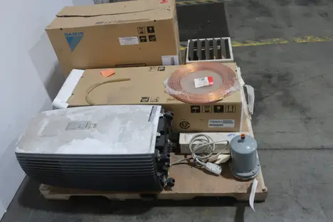 SKU 1734942 - 2 PALLET OF ASSORTED AIR CONDITIONERS RITTAL, FRIGIDAIRE, EIC, GLOBAL, MUELLER, QMARK, DAIKIN, TOTALINE
