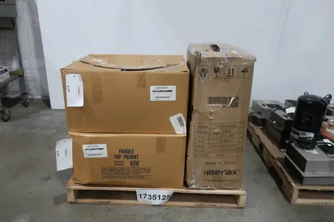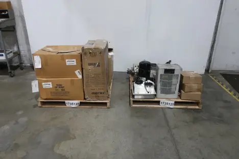 SKU 1735125 - 2 PALLETS OF ASSORTED AIR CONDITIONERS KRUEGER, KOOLTRONIC, WARNOCK, JOHNSON CONTROLS, EMERSON, EIC, GREAT LAKES COPPER, NVENT, EXAIR
