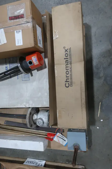 SKU 1737002 - 4 PALLETS OF ASSORTED HEATING ELEMENTS GAUMER, THERMON, TEMPCO, TEVAC, SEIWA, STTONE, KJT, ASB, CHROMAL OX, WATLOW, ENGEL, CALORITECH, MSK, WARREN, NELSON