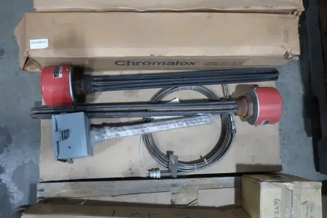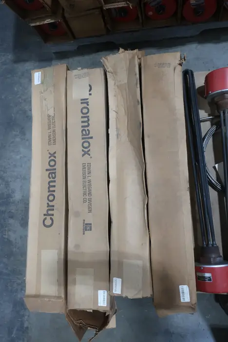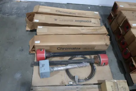 SKU 1737054 - 4 PALLETS OF ASSORTED HEATING ELEMENTS VAN DORN, HONEYWELL, WATLOW, PYROTENAX, TSK, BYLIN, CALORITECH, DANFOSS, GIANT, WARREN ELECTRIC, BRISKHEAT, CHROMOALOX