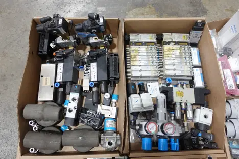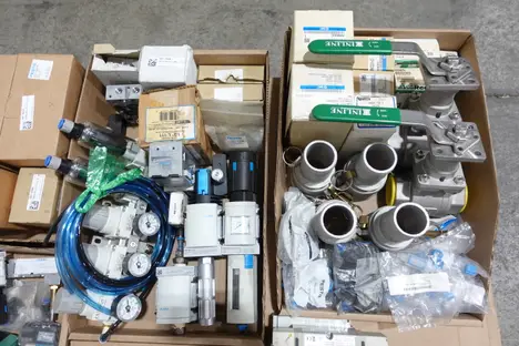 SKU 1737089 - 3 PALLETS OF ASSORTED VALVES AND VALVE PARTS; FESTO, ASCO, BONNEY FORGE, PARKER, SMC, NUMATICS