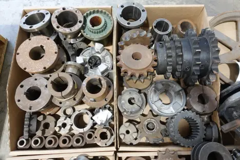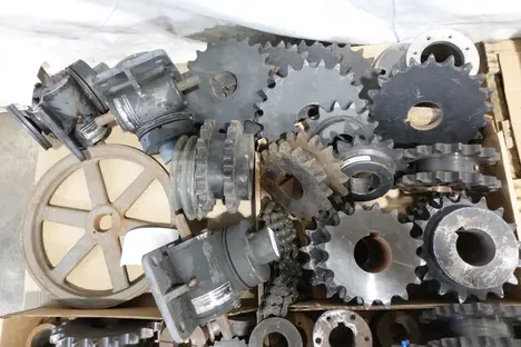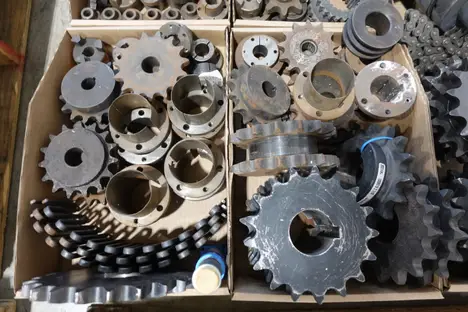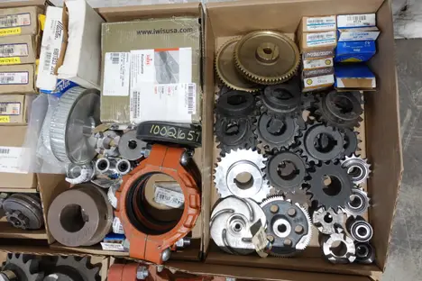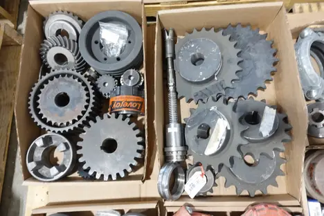 SKU 1737470 - 4 PALLETS OF ASSORTED POWER TRANSMISSION REPLACEMENT PARTS, SPROCKETS, COUPLERS, PULLEYS, SEALS, BELTS, HOSES, ROLLER CHAIN AND CHAIN LINKS; MARTIN, TB WOODS, TIMKEN, MORSE, DODGE, TSUBAKI, SKF, LOVEJOY