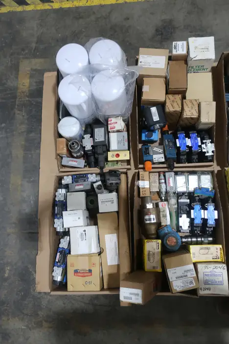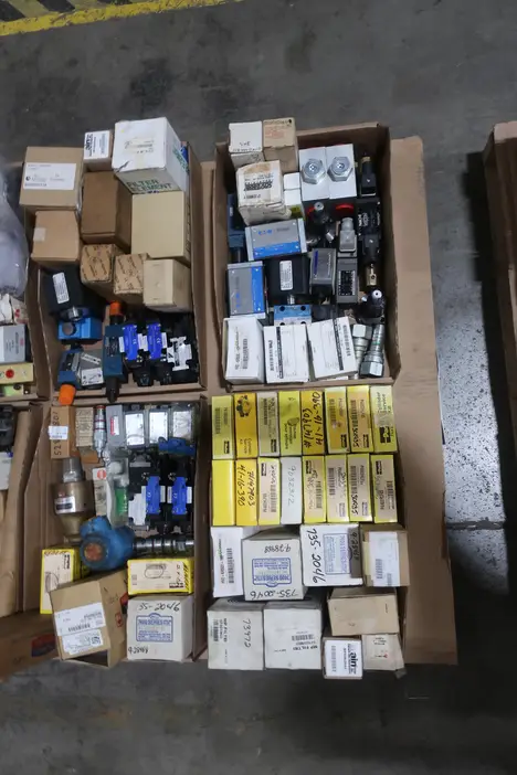 SKU 1737865 - 4 PALLETS OF ASSORTED HYDRAULICS SUN HYDRALICS, VICKERS, REXROTH, PARKER, TAISEI KOGYO, KOSMEK, DAIKIN, ASHUN, TAIYO, HORIUCHI MACHINERY, MAIN FILTER, SULLAIR, TOYO-OKI