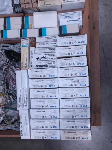 SKU 1738098 - 4 PALLETS OF ASSORTED AUTOMATION AND CONTROLS, MODULES, SENSORS, SWITCHES, POWER SUPPLIES, SCANNERS, OMRON, EATON, MODICON, AB, STARTECH, ABB, KEYENCE, MITSUBISHI ELECTRIC, PHOTOSWITCH, SOAL, PHOENIC, CONTACT, FOCBORO, SIEMENS