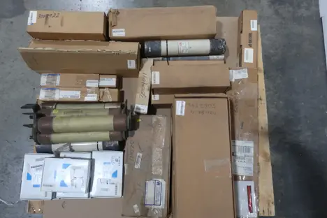 SKU 1739229 - PALLET OF ASSORTED FUSES GE, FEDERAL PACIFIC, CUTLER HAMMER, FERRAZ, EATON, GOULD, THOMAS&BETTS