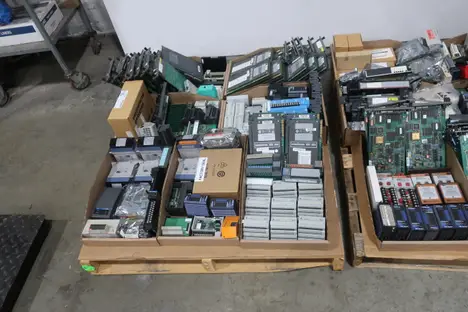 SKU 1739653 - 3 PALLETS OF ASSORTED MODUALS DATAFORTH, MOORE, AB, VICKERS, MODICON, KEYENCE, ONTEC, GE, ANALOG, WOODWARD, CONAIR, FOXBORO, FANUC, SCHNEIDER, MITSUBISHI, AGM, EMERSON, ABB