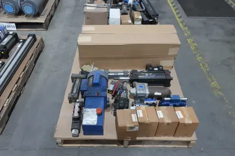 SKU 1744659 - 4 PALLETS OF ASSORTED HYDRAULIC REPLACEMENT PARTS REXROTH, LIQUIFINE, PARKER, MILLER, HYDRO-LINE, VICKERS, HORIUCHI, TAIYO, GATES, YATES