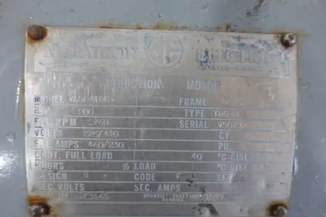 SKU 1751265 - MARATHON ELECTRIC VE584TDC38 AC MOTOR, 200 HP, 3 PH, 220/440V, 1760 RPM, FR. 584S