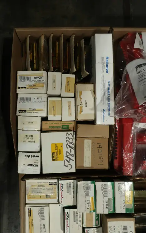 SKU 1759634 - 3 PALLETS OF ASSORTED VALVE PARTS AND ACCESSORIES, ASCO, XOMOX , FISHER, SPX, SWAGELOK, PARKER, ITT, DRESSER, CLARK-RELIANCE, VICKERS, ATLAS COPCO, WATTS, SLOAN, GOULDS, BRADY, TIMKEN, EATON, FLOWSERVE, GUARDIAN ELECTRIC, HYDAC, LAMONS, REXROTH, NUMATICS, KEYSTONE, MORSE, INDUSTRIAL MRO