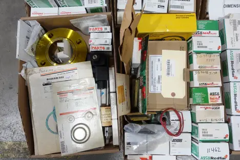 SKU 1759774 - 2 PALLETS OF ASSORTED VALVE PARTS AND ACCESSORIES; PARKER, FISHER, MOJONNIER, PENTAIR, ASCO, BAILEY, METSO, ROSS, JAMESBURY, BOSCH, VELAN, BELLOWS, HONEYWELL