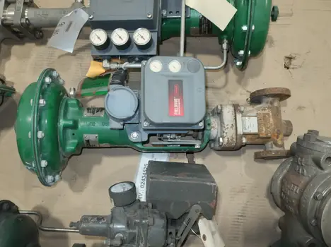 SKU 1760192 - PALLET OF ASSORTED FISHER CONTROL VALVES, FISHER EZ PNEUMATIC 657 SIZE 30 600 STEEL THREADED 3/4IN NPT CONTROL VALVE, FISHER 657-8UR 300 STAINLESS WAFER 4IN CONTROL VALVE, FISHER RSS PNEUMATIC 667 150 IRON FLANGED DVC6010 1IN CONTROL VALVE, FISHER EZ PNEUMATIC 667 SIZE 30 150 STAINLESS FLANGED 3582 1IN CONTROL VALVE