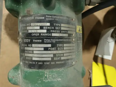 SKU 1760193 - PALLET OF ASSORTED FISHER CONTROL VALVES, FISHER ST13MS PNEUMATIC 150 STAINLESS FLANGED 1IN CONTROL VALVE, FISHER EZ PNEUMATIC 657 SIZE 40I 150 STAINLESS FLANGED 3582 2IN CONTROL VALVE, FISHER EZ PNEUMATIC 667 SIZE 40I 150 STAINLESS FLANGED 3582G 2IN CONTROL VALVE, FISHER EZ PNEUMATIC 657 SIZE 34 150 STAINLESS FLANGED 2IN CONTROL VALVE, FISHER V150 VEE-BALL PNEUMATIC 1052 SIZE 33 150 STAINLESS FLANGED 2IN CONTROL VALVE