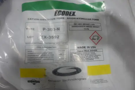 SKU 1760796 - 2 PALLETS OF ECODEX CATION-AMMONIUM FORM AND ANION-HYDROXIDE FORM EXCHANGE RESIN, TYPE P-303-N
