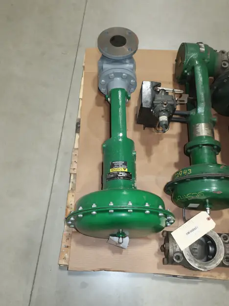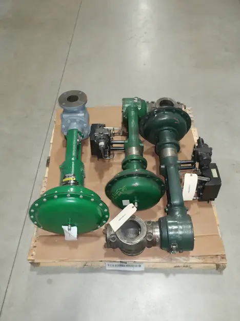 SKU 1761238 - PALLET OF ASSORTED FISHER CONTROL VALVES, FISHER V-NOTCH VEE-BALL 657-8-UR SIZE 40 300 STAINLESS 4IN CONTROL VALVE, FISHER ET PNEUMATIC 657 SIZE 45 125 IRON FLANGED 3IN CONTROL VALVE