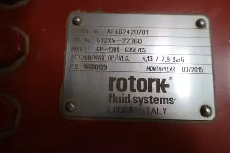 SKU 1761376 - ROTORK GP-130S-635E/C5 PNEUMATIC RANGE SCOTCH YOKE ACTUATOR 7.9BAR