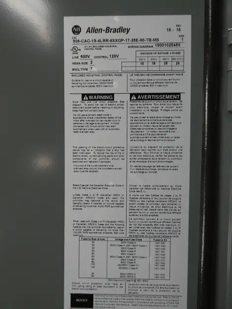 SKU 947632 - ALLEN BRADLEY 505-COD-XXX SIZE 2 REVERSING DISCONNECT COMBINATION STARTER