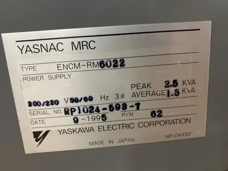SKU 950297 - YASKAWA YR-K3-C000 ENCM-RM6022 YASNAC MRC MOTOMAN ROBOT AND CONTROLLER ASSEMBLY