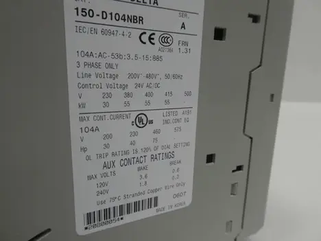 SKU 975186 - ALLEN BRADLEY 150-D104NBR SMC-DELTA SOFT STARTER 104A 75HP 200-480V-AC 24V-AC/DC