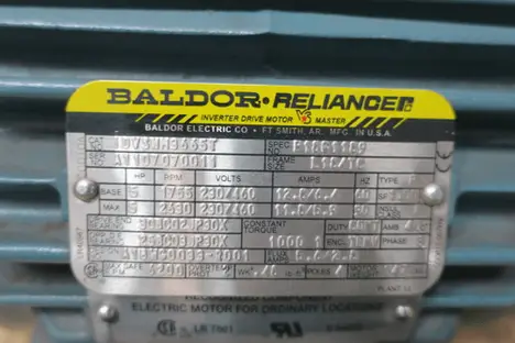 SKU 986301 - BALDOR IDVSNM3665T VS MASTER AC MOTOR L184TC 3PH 5HP 1755RPM 230/460V-AC