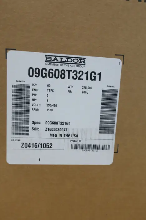 SKU 987158 - BALDOR RELIANCE 09G608T321G1 AC MOTOR 284U 3PH 5HP 1180RPM 230/460V-AC