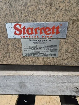 THE STARRETT CRYSTAL PINK GRANITE SURFACE PLATE MEASURES 36 INCHES BY 48 INCHES WITH A THICKNESS OF 8 INCHES, PROVIDING A ROBUST AND STABLE PLATFORM FOR PRECISION MEASUREMENT TASKS. CONSTRUCTED FROM CRYSTAL PINK GRANITE, THIS SURFACE PLATE IS RENOWNED FOR ITS EXCEPTIONAL WEAR RESISTANCE, MAKING IT A RELIABLE CHOICE FOR LONG-TERM USE IN QUALITY CONTROL ENVIRONMENTS. IT IS CLASSIFIED AS GRADE A, SUITABLE FOR GENERAL INSPECTION WORK, AND OFFERS A FLATNESS UNILATERAL TOLERANCE OF 0.000200 INCHES (0.0050 MM), ENSURING HIGH ACCURACY IN MEASUREMENTS. THE SURFACE PLATE IS DESIGNED WITHOUT LEDGES, OPTIMIZING THE USABLE SURFACE AREA. IT FEATURES A T-SLOT TRACK RUNNING THROUGH THE MIDDLE, ALLOWING FOR SECURE BOLTING OF ITEMS TO THE PLATE, AND INCLUDES FOUR THREADED HOLES FOR ADDITIONAL ATTACHMENT OPTIONS. THIS CONFIGURATION MAKES IT IDEAL FOR VARIOUS QUALITY CONTROL TASKS, PROVIDING BOTH PRECISION AND VERSATILITY IN MEASUREMENT APPLICATIONS.