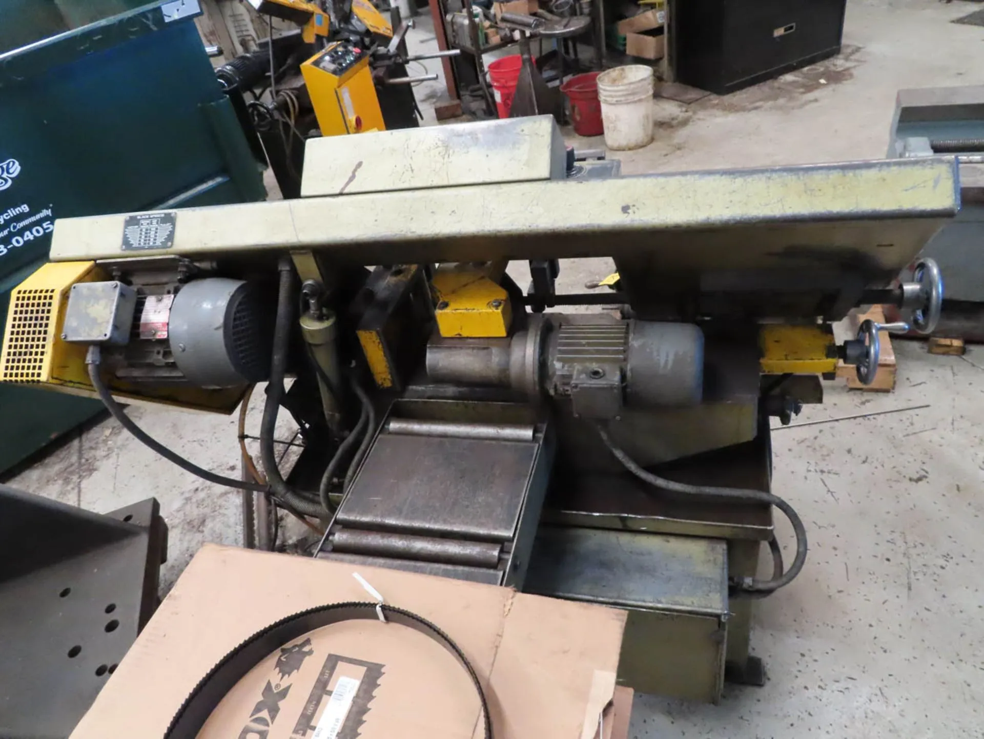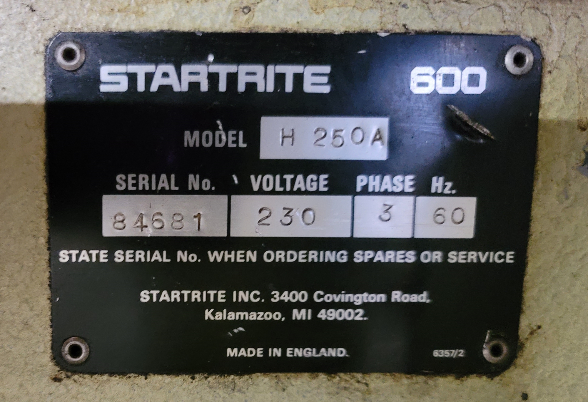 THE STARTRITE MODEL H250A IS AN AUTOMATIC HORIZONTAL BANDSAW DESIGNED FOR INDUSTRIAL CUTTING APPLICATIONS. IT FEATURES A 2 HORSEPOWER MOTOR AND OPERATES ON 230V 3-PHASE POWER. THE SAW IS CAPABLE OF HANDLING BOTH RECTANGULAR AND ROUND MATERIALS WITH A MAXIMUM CAPACITY OF 10 INCHES FOR ROUND STOCK AND 10 INCHES IN HEIGHT BY 12 INCHES IN WIDTH FOR RECTANGULAR STOCK. THE BANDSAW UTILIZES A BLADE THAT IS 126 INCHES IN LENGTH, 19.68 INCHES IN WIDTH, AND 0.04 INCHES IN THICKNESS, PROVIDING PRECISE AND EFFICIENT CUTTING PERFORMANCE. THE MACHINE'S ROBUST CONSTRUCTION CONTRIBUTES TO ITS TOTAL WEIGHT OF 1400 POUNDS, ENSURING STABILITY AND DURABILITY DURING OPERATION.