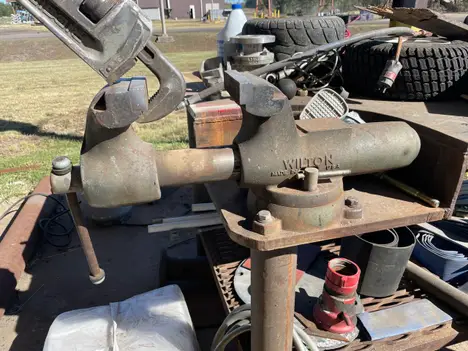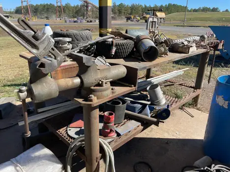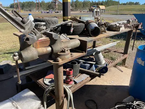 Steel table without contents; 3 vice mounted & included
