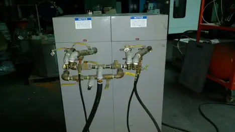 Sterlco Temperature Controller System M3 Model: M8425AC2X - Hot Water Unit. Serial: 96H5201 Year of Mfg: 6/1996 Dual Zone - 9kw per zone 250 Degree max temp 1/2 hp pump on each side All brass pump construction - Special Order Item M3 Controller w SPI 485