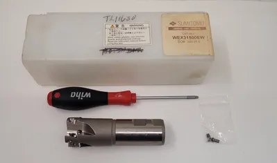 THE SUMITOMO WEX31500EW IS A PRECISION-ENGINEERED INDEXABLE MILLING CUTTER DESIGNED FOR EFFICIENT MILLING OPERATIONS. IT FEATURES A CUTTING DIAMETER OF 1.5 INCHES AND AN OVERALL LENGTH OF 4.531 INCHES, MAKING IT SUITABLE FOR VARIOUS MILLING APPLICATIONS. THE CUTTER IS PART OF THE WAVEMILL SERIES AND IS CHARACTERIZED BY A 90-DEGREE LEAD ANGLE, WHICH ENHANCES ITS CUTTING PERFORMANCE. THE TOOL IS EQUIPPED WITH A WELDON FLAT SHANK TYPE, PROVIDING A SECURE AND STABLE CONNECTION DURING OPERATION. THE SHANK DIAMETER MEASURES 1.25 INCHES (1-1/4 INCH), AND THE SHANK LENGTH IS 2.281 INCHES, ENSURING COMPATIBILITY WITH A RANGE OF MILLING MACHINES. THE HEAD LENGTH OF THE CUTTER IS 2.25 INCHES, AND IT UTILIZES A SCREW INSERT HOLDING METHOD FOR RELIABLE INSERT RETENTION. THIS MILLING CUTTER IS SPECIFICALLY DESIGNED FOR PRECISION AND DURABILITY IN DEMANDING MILLING TASKS.
