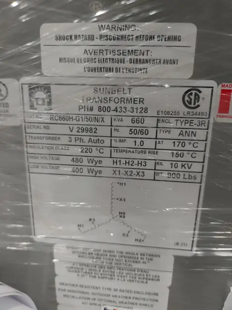 Sunbelt Tranformer 660 KVA (new)
