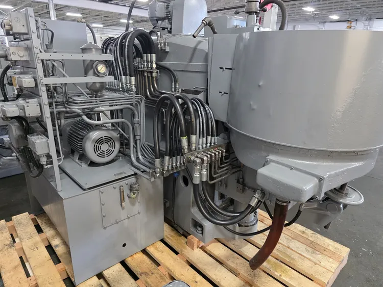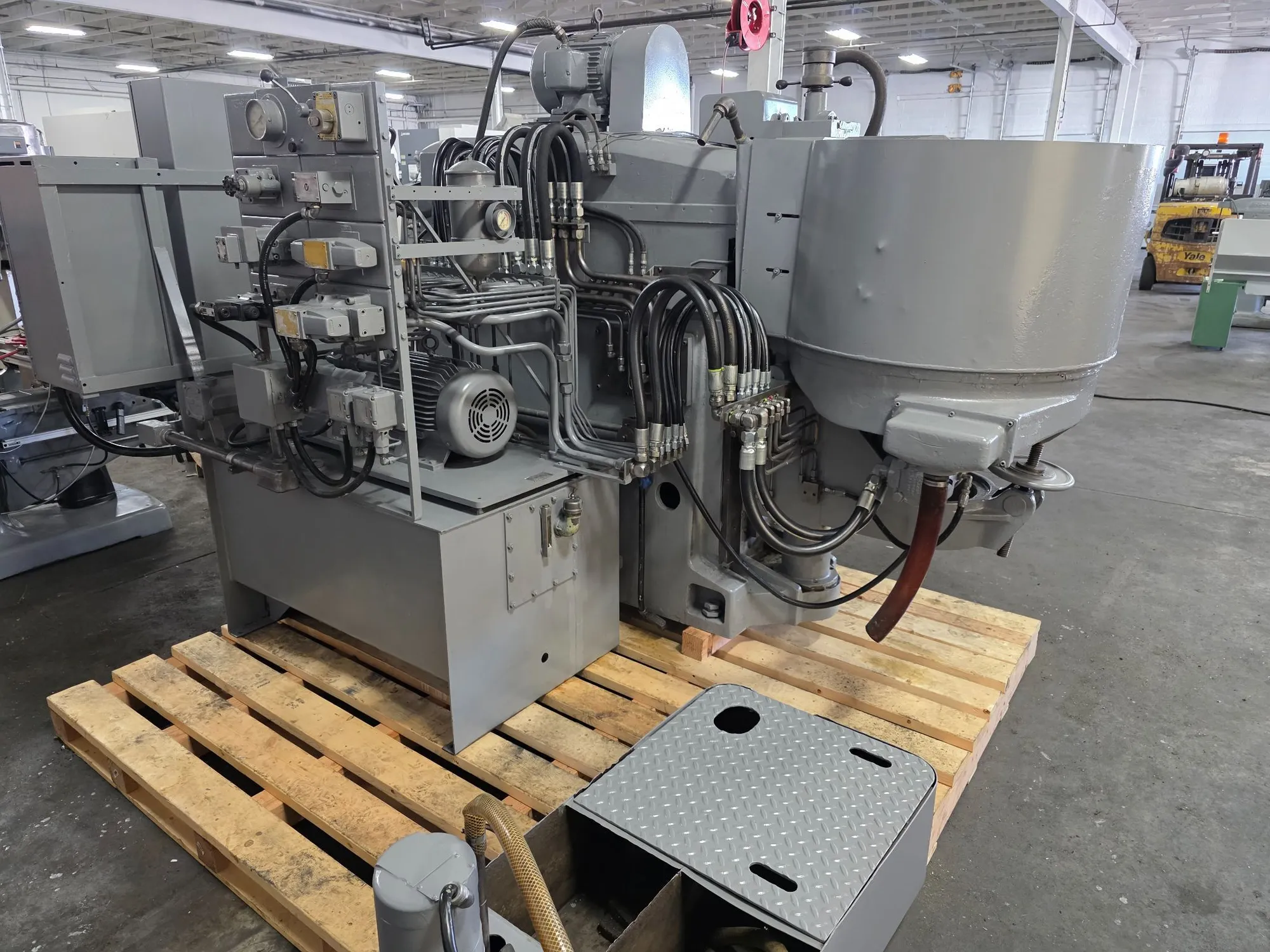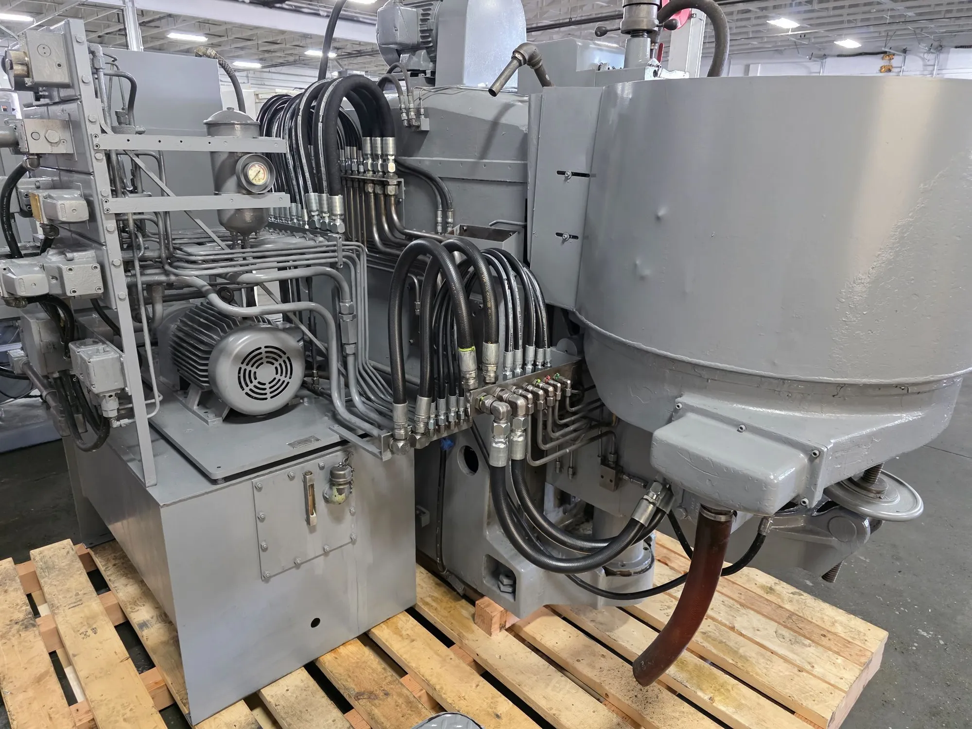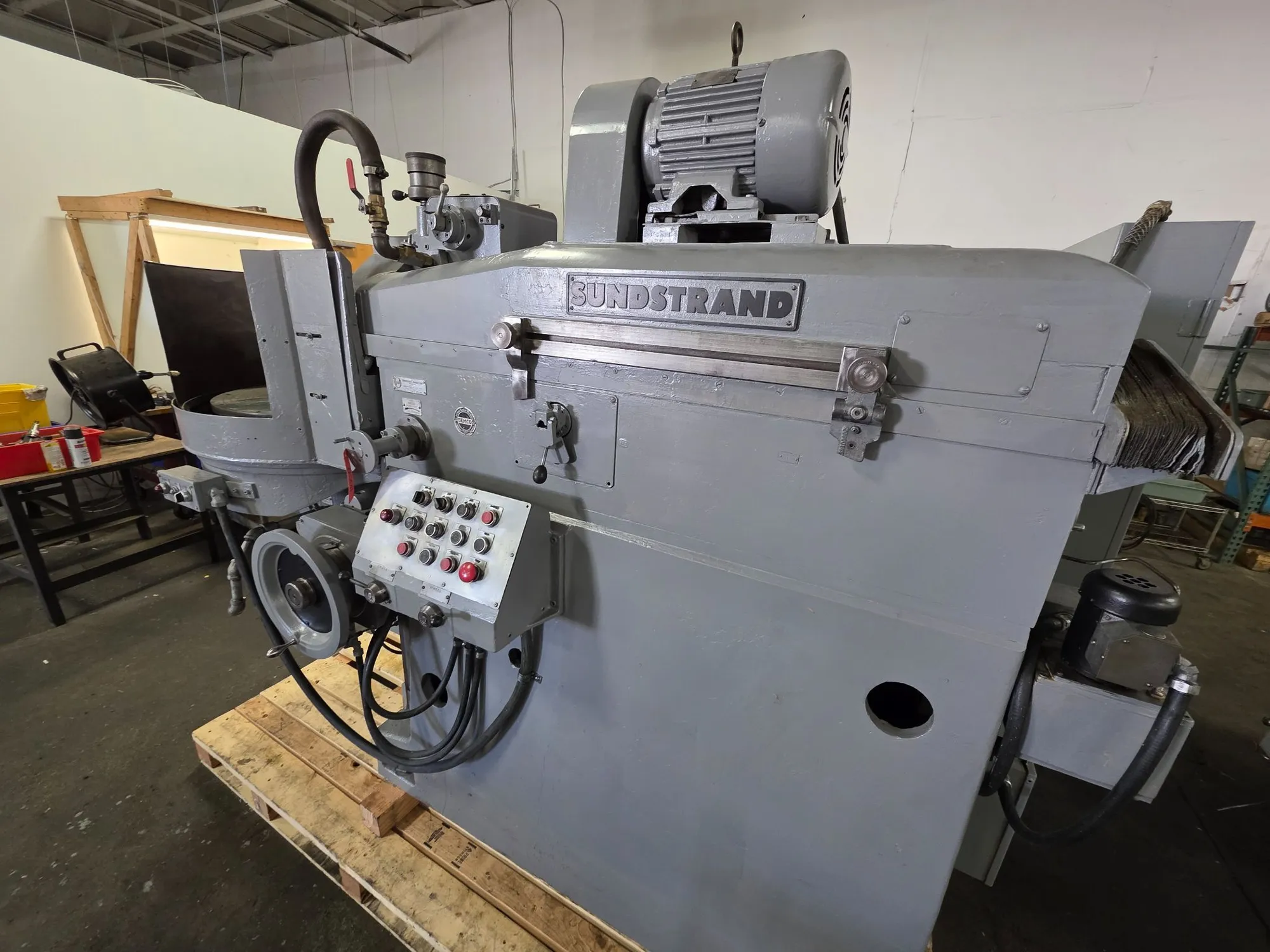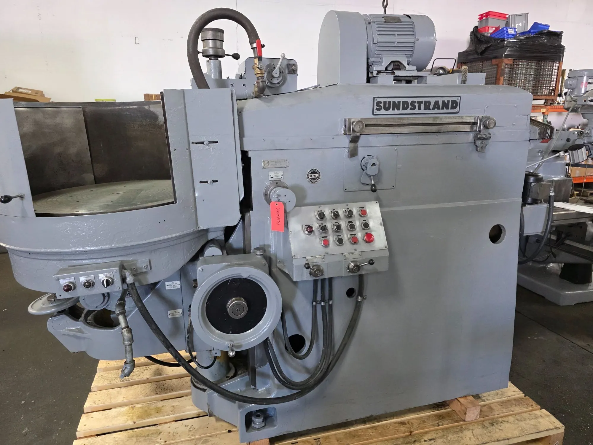 THE SUNDSTRAND/ARTER H-30 ROTARY SURFACE GRINDER IS A HORIZONTAL GRINDING MACHINE WITH A NET MACHINE WEIGHT OF 12,600 LBS AND DIMENSIONS OF 126” X 58” X 91”. ITS CAPACITY IS DEFINED BY A 30-INCH NOMINAL DIAMETER MAGNETIC CHUCK, AN ACTUAL FACE DIAMETER OF 31 INCHES, A MAXIMUM SWING OF 34 INCHES, AND A MAXIMUM WORK HEIGHT OF 10 INCHES WITH A NEW WHEEL. THE STANDARD GRINDING WHEEL SIZE IS 16” X 2” X 8”. THE MACHINE IS POWERED BY A 460V-60HZ-3 PHASE ELECTRICAL SYSTEM, FEATURING A 20 HP/1800 RPM WHEELHEAD SPINDLE MOTOR AND A 10 HP/1800 RPM HYDRAULIC PUMP MOTOR. KEY PERFORMANCE SPECIFICATIONS INCLUDE A WHEELHEAD SPINDLE SPEED OF 1400 RPM AND AN ADJUSTABLE TABLE SPEED RANGING FROM 30 TO 125 RPM. IT PROVIDES A MAXIMUM WHEELHEAD STROKE OF 17 INCHES, A KNEE MAXIMUM VERTICAL TRAVEL OF 12 INCHES, AND AN ANGULAR TILT CAPACITY OF 10 DEGREES FOR BOTH CONVEX AND CONCAVE SURFACES. THE ADJUSTABLE POWER FEED RANGES FROM .0001” TO .0015”, WITH A TABLE SLIDE POWER POSITIONING RATE OF 6 IPM. THE MACHINE UTILIZES A 45-GALLON COOLANT RESERVOIR AND AN 80-GALLON HYDRAULIC RESERVOIR.