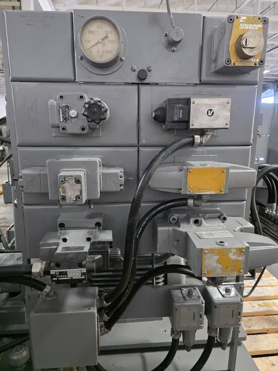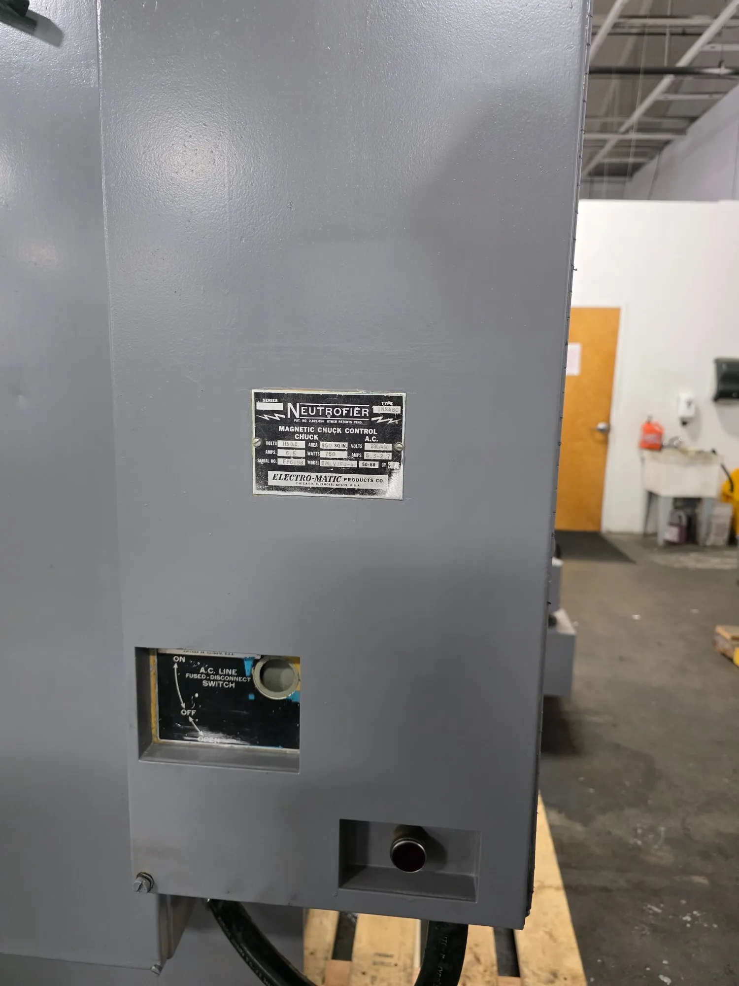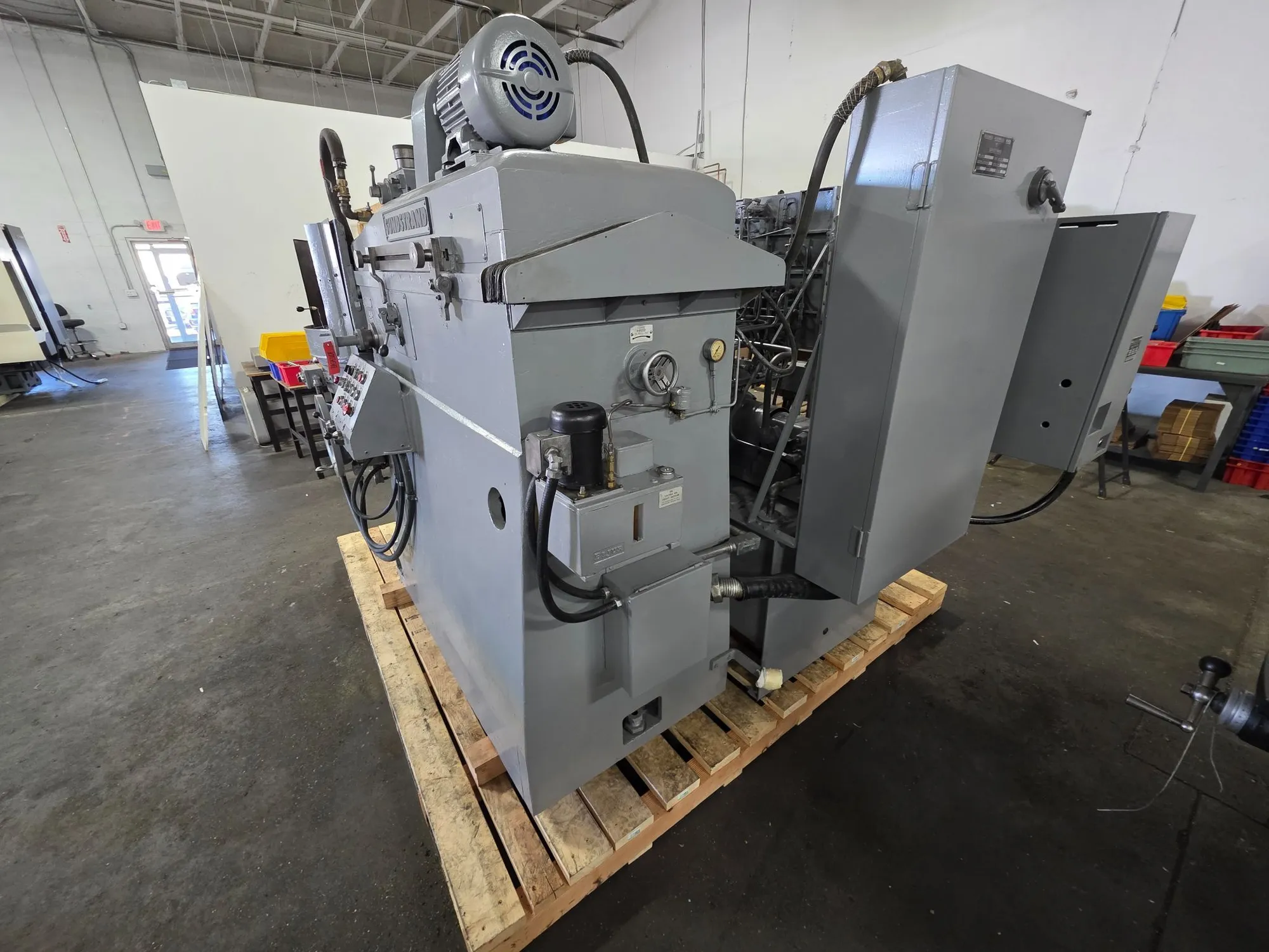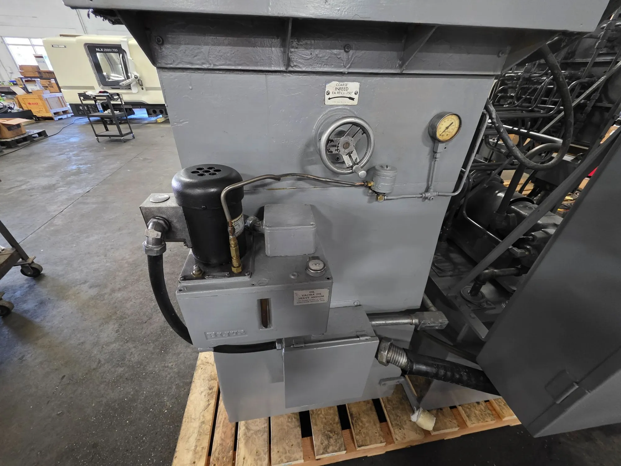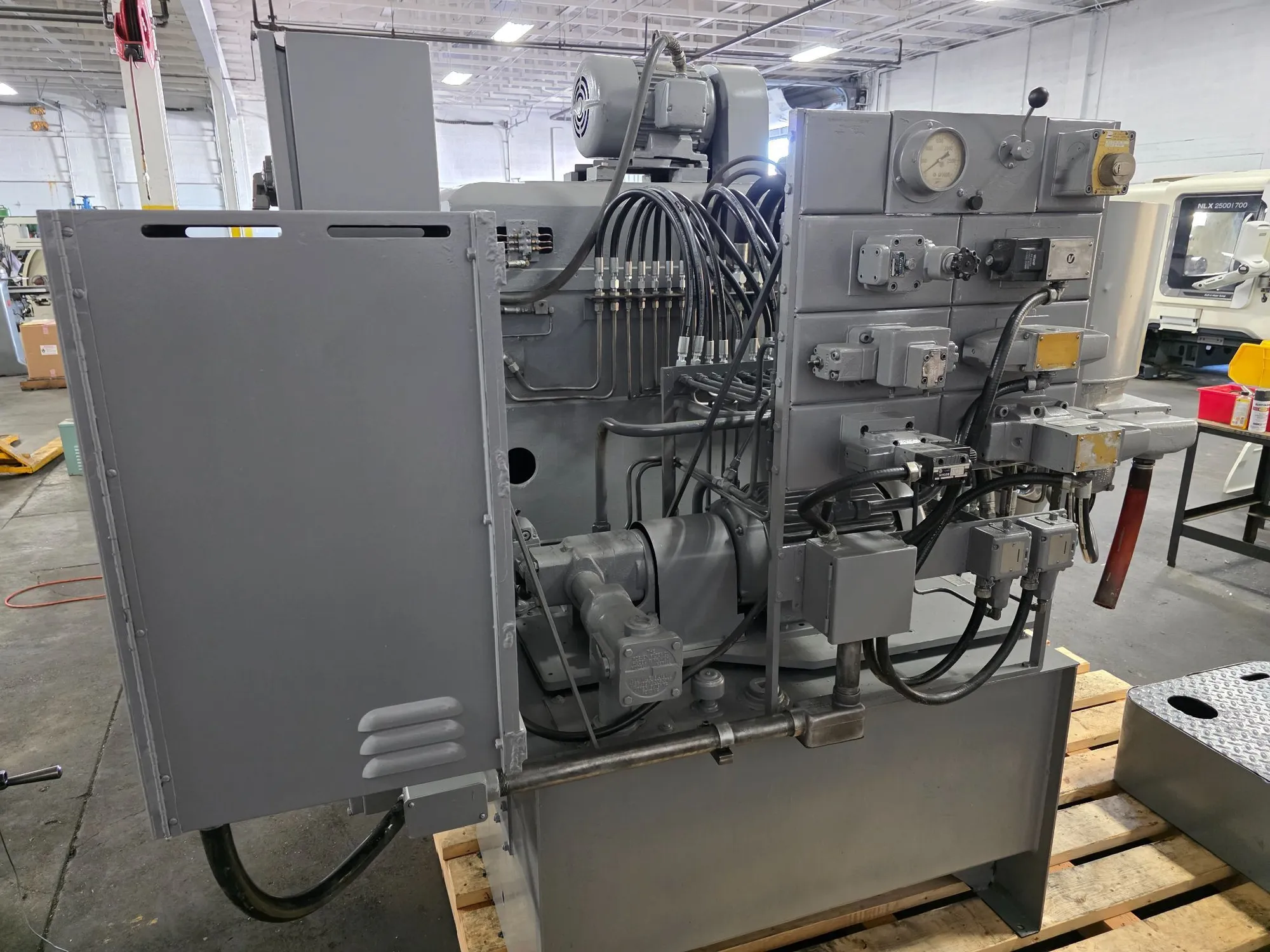 THE SUNDSTRAND/ARTER H-30 ROTARY SURFACE GRINDER IS A HORIZONTAL GRINDING MACHINE WITH A NET MACHINE WEIGHT OF 12,600 LBS AND DIMENSIONS OF 126” X 58” X 91”. ITS CAPACITY IS DEFINED BY A 30-INCH NOMINAL DIAMETER MAGNETIC CHUCK, AN ACTUAL FACE DIAMETER OF 31 INCHES, A MAXIMUM SWING OF 34 INCHES, AND A MAXIMUM WORK HEIGHT OF 10 INCHES WITH A NEW WHEEL. THE STANDARD GRINDING WHEEL SIZE IS 16” X 2” X 8”. THE MACHINE IS POWERED BY A 460V-60HZ-3 PHASE ELECTRICAL SYSTEM, FEATURING A 20 HP/1800 RPM WHEELHEAD SPINDLE MOTOR AND A 10 HP/1800 RPM HYDRAULIC PUMP MOTOR. KEY PERFORMANCE SPECIFICATIONS INCLUDE A WHEELHEAD SPINDLE SPEED OF 1400 RPM AND AN ADJUSTABLE TABLE SPEED RANGING FROM 30 TO 125 RPM. IT PROVIDES A MAXIMUM WHEELHEAD STROKE OF 17 INCHES, A KNEE MAXIMUM VERTICAL TRAVEL OF 12 INCHES, AND AN ANGULAR TILT CAPACITY OF 10 DEGREES FOR BOTH CONVEX AND CONCAVE SURFACES. THE ADJUSTABLE POWER FEED RANGES FROM .0001” TO .0015”, WITH A TABLE SLIDE POWER POSITIONING RATE OF 6 IPM. THE MACHINE UTILIZES A 45-GALLON COOLANT RESERVOIR AND AN 80-GALLON HYDRAULIC RESERVOIR.