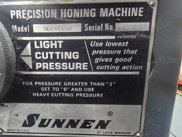 SUNNEN MBB-1690 HONING MACHINE | DIAM 0.060”-6.5”, STRK 16”, SPD 200-1600 RPM, 230V, 3 PH, 2000LBS