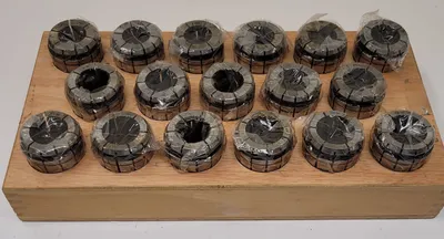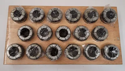 THE TECHNIKS TG 150 COLLET SET COMPRISES 17 PRECISION-ENGINEERED COLLETS, DESIGNED FOR HIGH-PERFORMANCE APPLICATIONS REQUIRING EXACTING STANDARDS. THIS SET INCLUDES COLLETS RANGING IN SIZE FROM 1 1/32” TO 1 13/64”, PROVIDING A COMPREHENSIVE SELECTION FOR VARIOUS TOOLING NEEDS. EACH COLLET IS CRAFTED TO FIT THE TG 150 SPECIFICATION, ENSURING COMPATIBILITY WITH CORRESPONDING TOOL HOLDERS AND MACHINERY. THE SIZES INCLUDED IN THIS SET ARE 1 1/32", 1 3/64", 1 1/16", 1 5/64", 1 3/32", 1 7/64", 1 3/16", 1 1/64", 1 5/32", 1 9/64", 1 1/8", 1 9/32", 1 17/64", 1 1/4", 1 15/64", 1 7/32", AND 1 13/64". EACH COLLET IS INDIVIDUALLY WRAPPED IN PLASTIC TO MAINTAIN ITS PRISTINE CONDITION AND PREVENT CONTAMINATION. THE SET IS HOUSED IN A DURABLE WOOD TRAY, PROVIDING ORGANIZED STORAGE AND EASY ACCESS. THIS COLLET SET IS IDEAL FOR PRECISION TASKS, OFFERING RELIABLE PERFORMANCE AND SECURE TOOL HOLDING FOR VARIOUS MACHINING OPERATIONS.