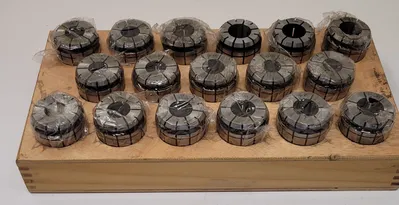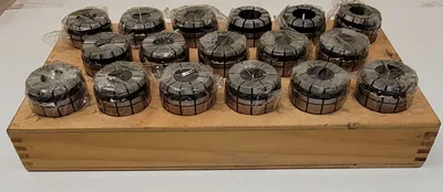 THE TECHNIKS TG 150 COLLET SET IS A COMPREHENSIVE COLLECTION OF 17 PRECISION-ENGINEERED COLLETS, DESIGNED TO ACCOMMODATE A RANGE OF DIAMETERS FROM 1 49/64 INCHES TO 1 15/16 INCHES. THIS SET IS IDEAL FOR PRECISION TOOLING APPLICATIONS, PROVIDING RELIABLE AND ACCURATE CLAMPING FOR VARIOUS MACHINING TASKS. EACH COLLET IS CRAFTED TO ENSURE OPTIMAL PERFORMANCE AND DURABILITY, MAKING THEM SUITABLE FOR HIGH-PRECISION ENVIRONMENTS. THE SET INCLUDES COLLET SIZES OF 1 49/64", 25/32", 51/64", 13/16", 53/64", 27/32", 55/64", 7/8", 57/64", 29/32", 59/64", 1", 1 1/64", 53/64", 31/32", 61/64", AND 1 15/16". THESE COLLETS ARE HOUSED IN A STURDY WOOD TRAY, PROVIDING ORGANIZED STORAGE AND EASY ACCESS. THE MAJORITY OF THE COLLETS ARE STILL WRAPPED IN PLASTIC, ENSURING THEY REMAIN IN PRISTINE CONDITION UNTIL USE. THIS SET IS AN ESSENTIAL ADDITION FOR PROFESSIONALS SEEKING PRECISION AND RELIABILITY IN THEIR TOOLING ACCESSORIES.