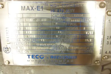 TECO-WESTINGHOUSE MAX-E1 ELECTRIC MOTOR - LR47823, 460 VOLTS, 150KW H.P., 223 AMPS, 1784 RPM